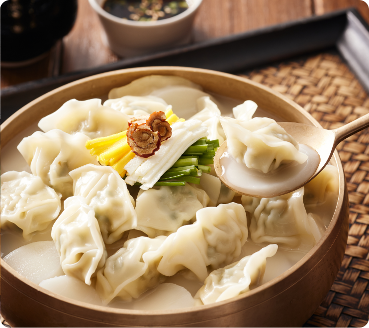 있으며, 활용도가 높아 다양하게 조리 가능한 물만두.