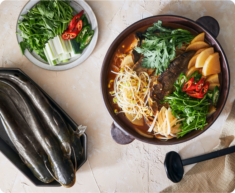 충남 홍성 자가 양식장에서 직접 기른 메기를 사용합니다.